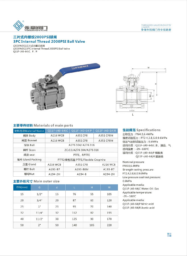 高壓三片式球閥