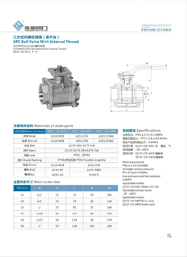 三片式高平臺球閥